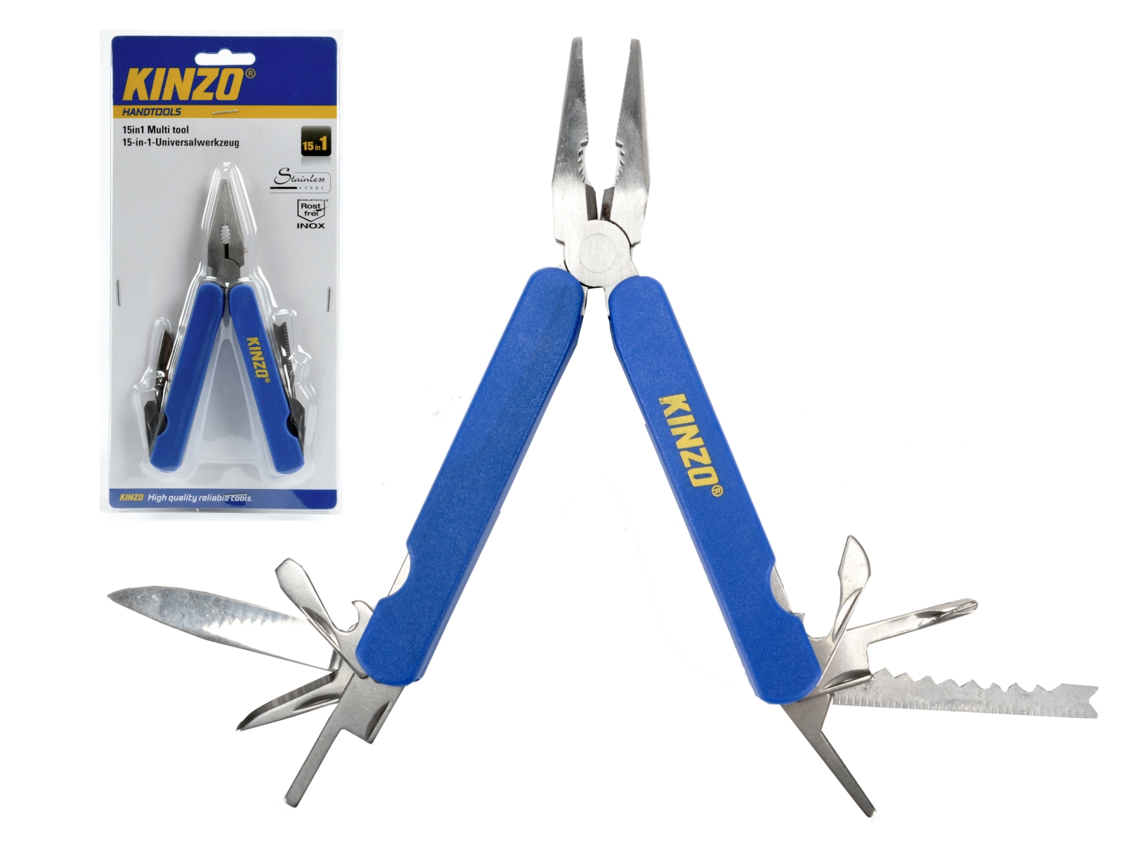 KINZO Multitool 15in1 Universalwerkzeuge, Edelstahl Rostfrei, Blisterkarton